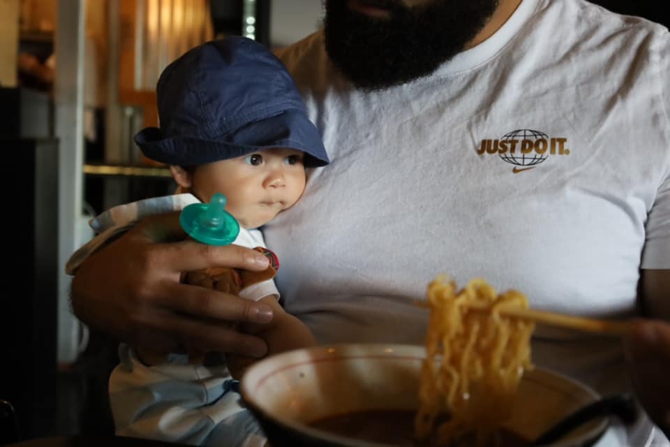 There was a peds cardiologist at the bar and he shared stories of his time in Japan. He had a lot of neat stories about their food and jazz scenes. I cannot wait to go! Plus my in laws are still there, eager to meet their first grandson! The next day we ate tacos and went for a long stroll in the park/nature trails. Upon our arrival to the park, we discovered that Luka blew up his diaper. Thus, we had the wonderful experience of giving him a road side bath with a gallon of water, wipes and a swift change of clothes. What he did to that diaper was mad disrespectful.