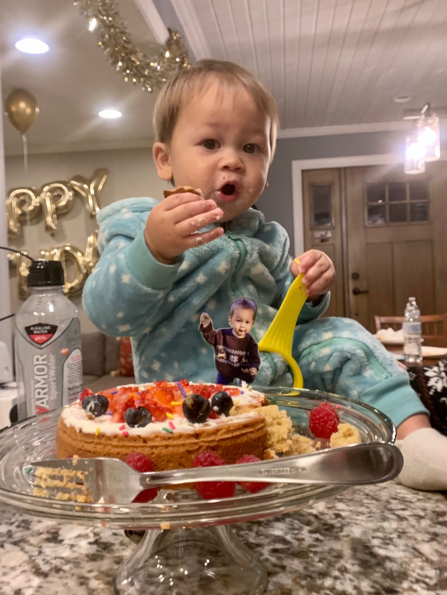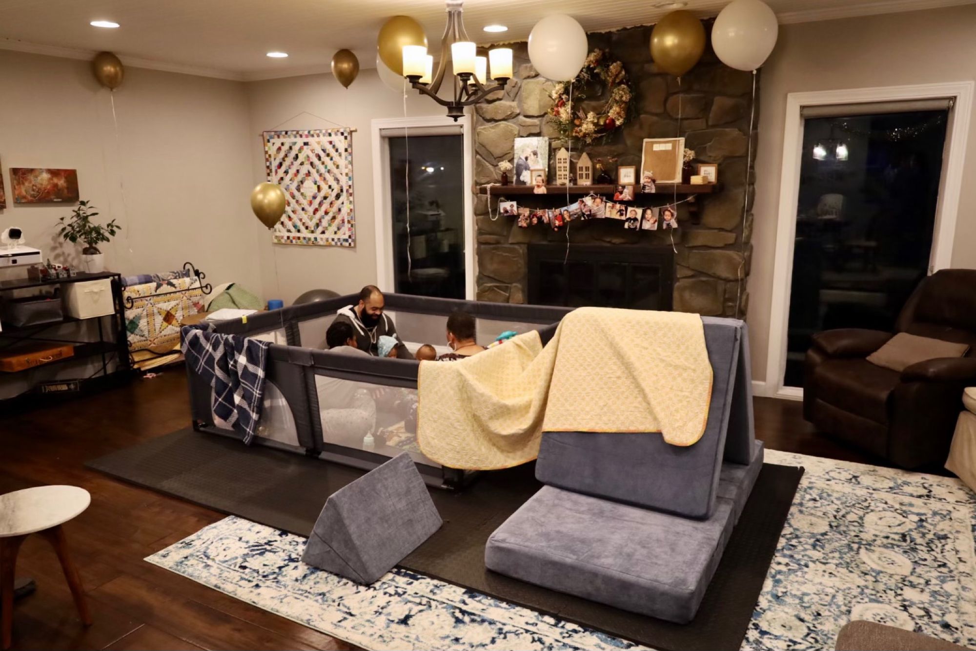 My wife did amazing job decorating with balloons and family photos all over the living room and kitchen. She even rearranged the living room, turning it into a huge play area.